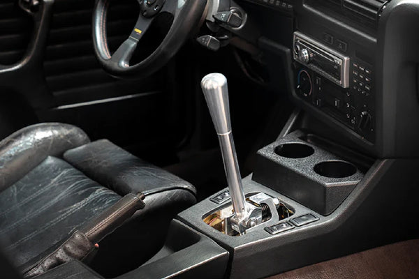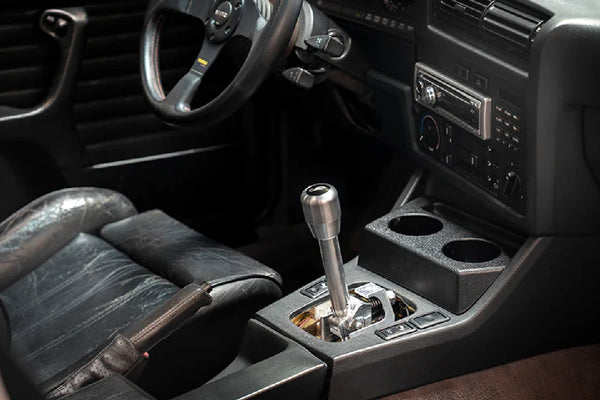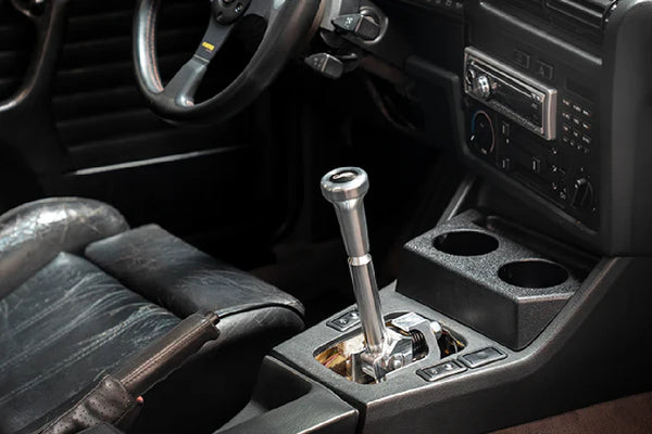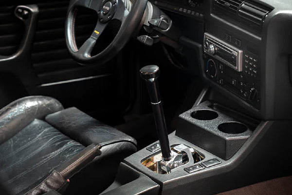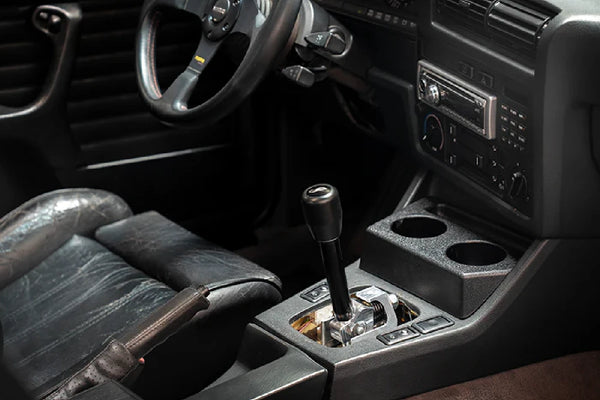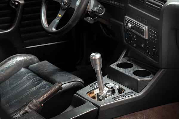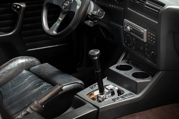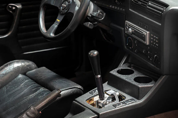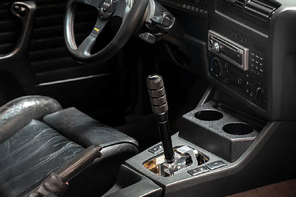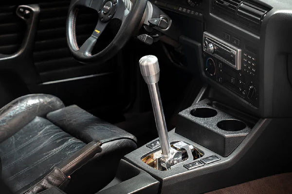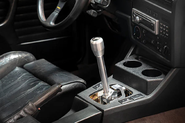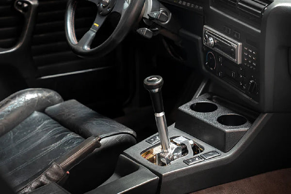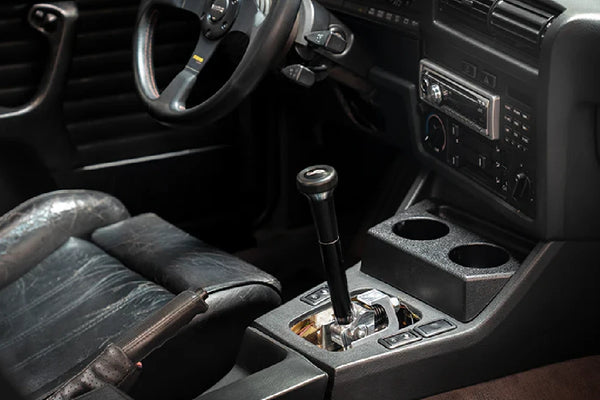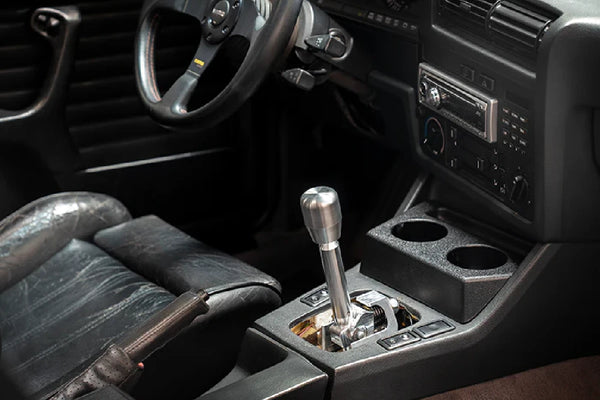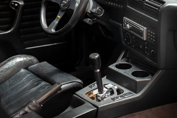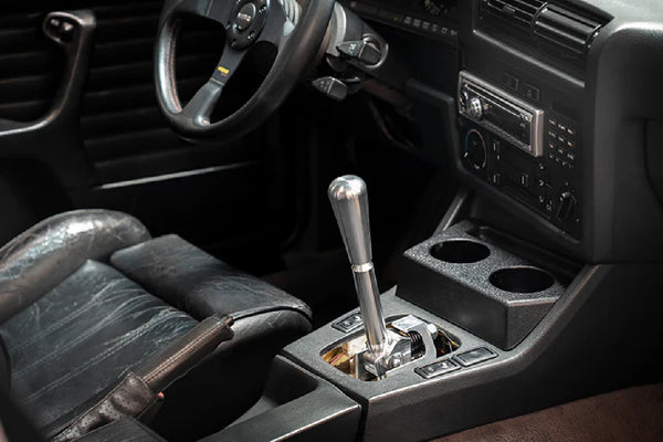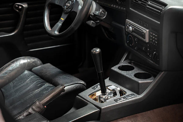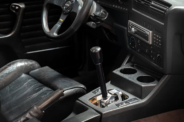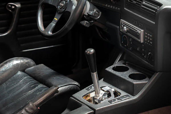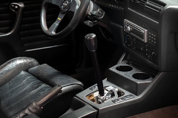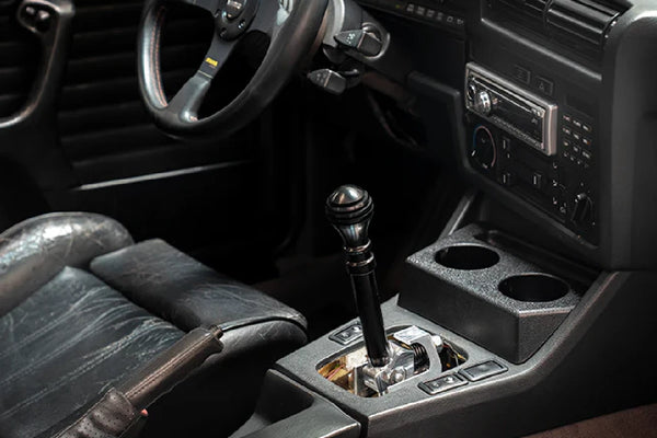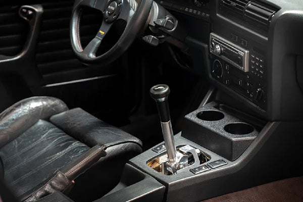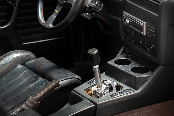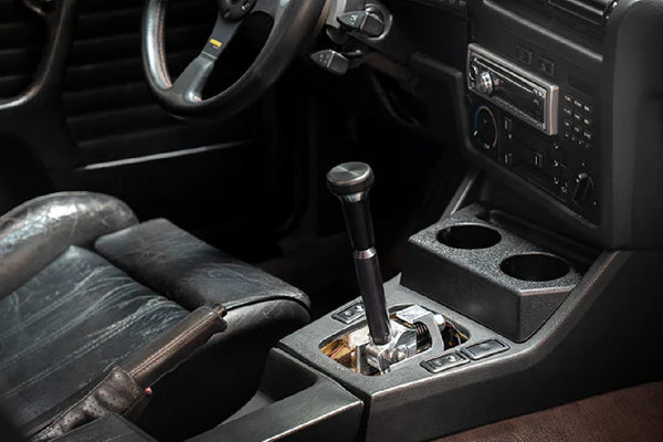 In the E30 chassis, the base of the shifter protrudes just above the shifter console. For a sleek look, check out our range of shifter boots!