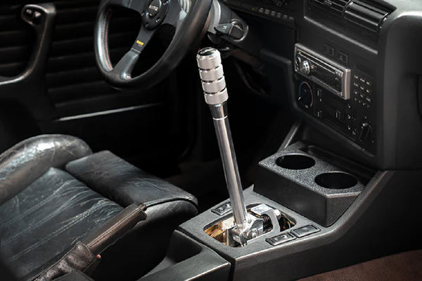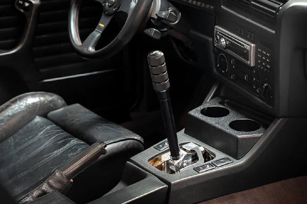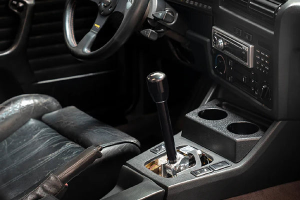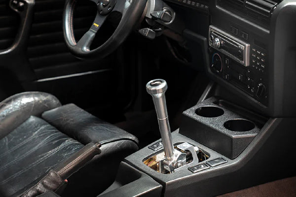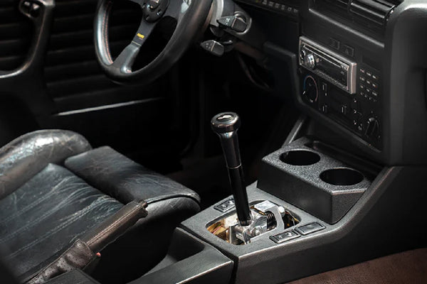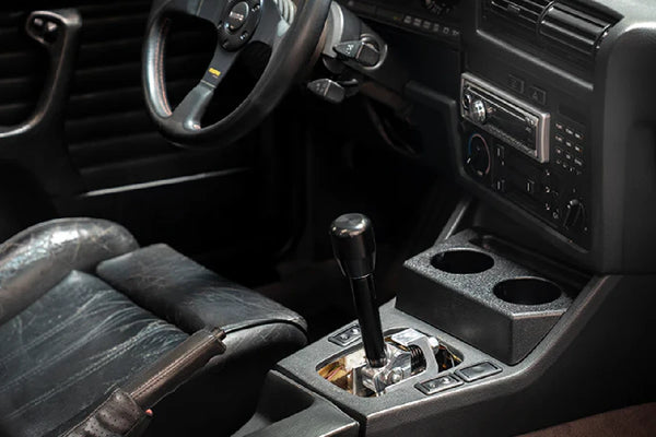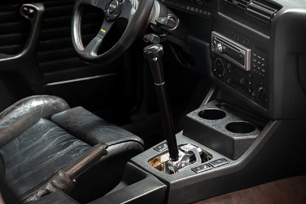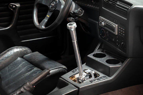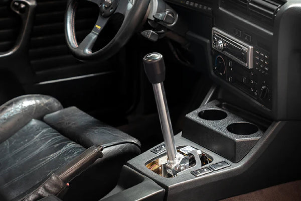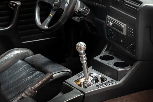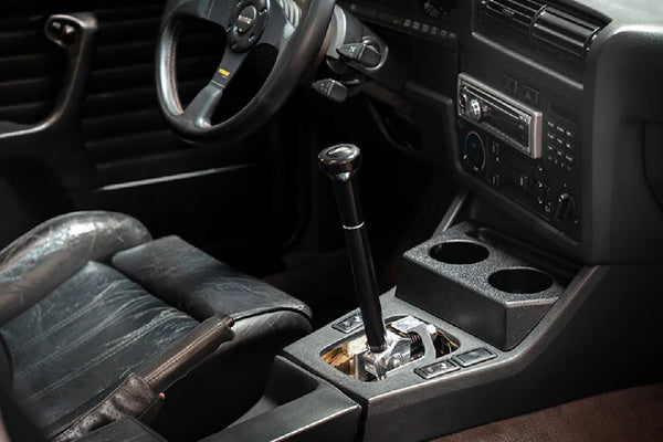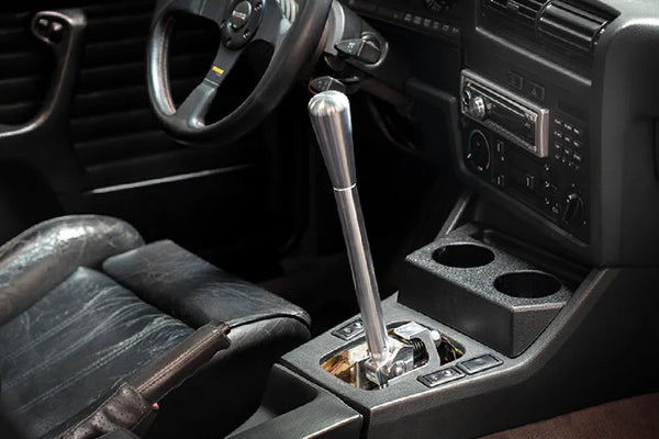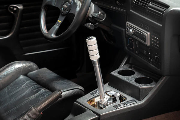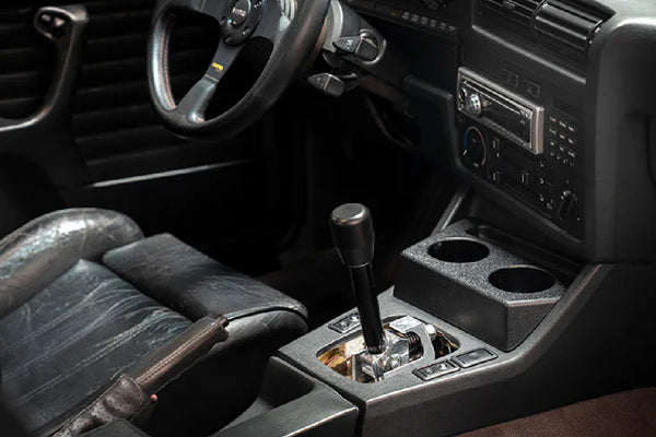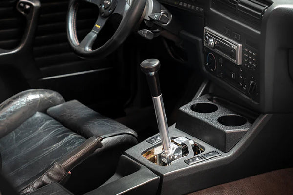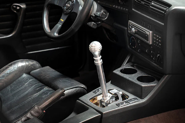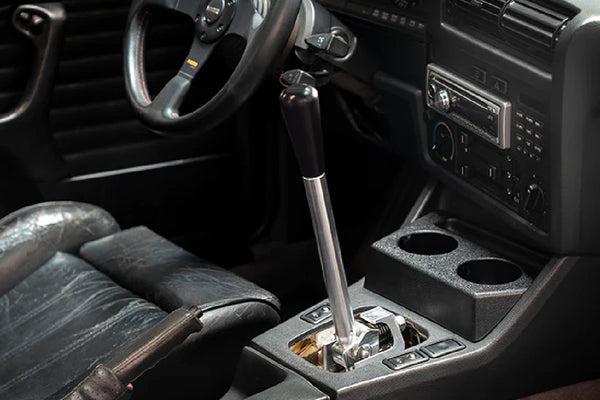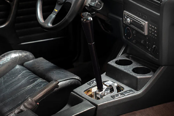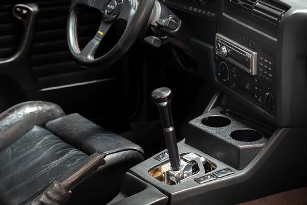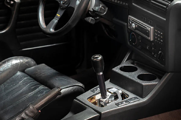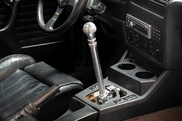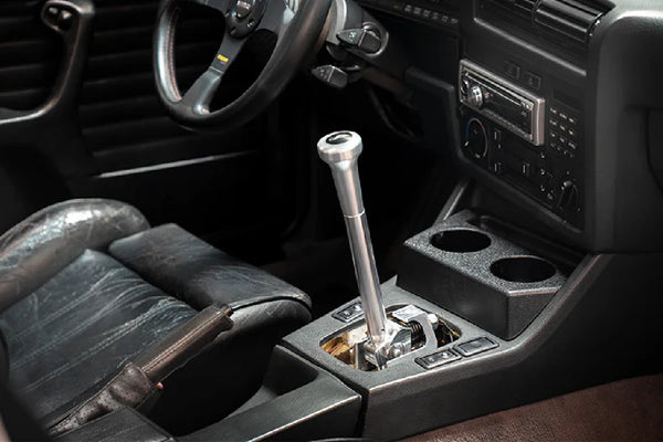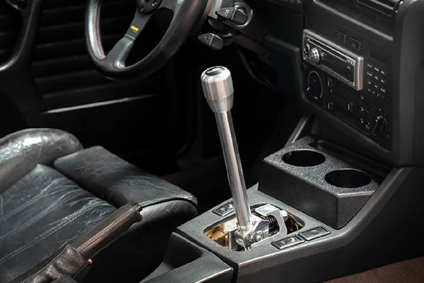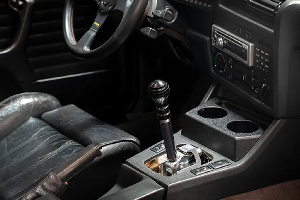 In the E30 chassis, the base of the shifter protrudes just above the shifter console. For a sleek look, check out our range of shifter boots!